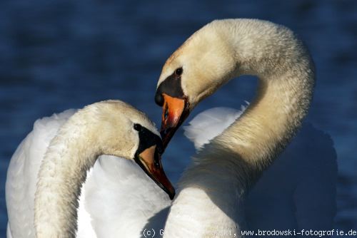 Nun zeige ich Euch erstmal ein Bild auf dem ihr sehen könnt wie harmonisch es bei dem Ritual der Begrüßung zugeht. Wenn sich ein Schwanen-Paar am Tag über einen längeren Zeitraum nicht gesehen hat, und dann wieder zusammen trifft, wird sich ausgiebig begrüßt.