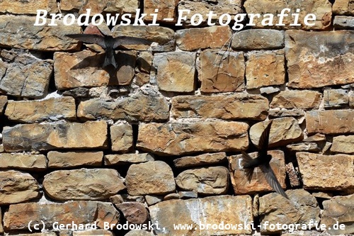Kurz noch zum Namen vom Mauersegler. Er wurde schon immer an alten Gemäuern und Kirchtürmen gesehen, wie er sie rufend umkreiste. Da hat doch mal ein Vogel den richtigen Namen zu seinem Verhalten bekommen. Er segelt an Mauern entlang.