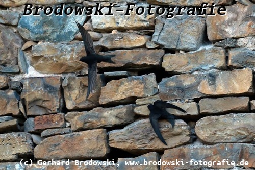 Nun zum Brutplatz von Mauerseglern. Mauersegler gehören zu den Koloniebrütern und zu den Höhlenbrütern. Ihre Brutplätze finden sie in Felsnischen, in alten Mauern von Bauwerken (Kirchen, Burgen, Brücken), unter Dächern, in Baumhöhlen und in Nistkästen die für sie in Dörfern und Städten aufgehängt werden.