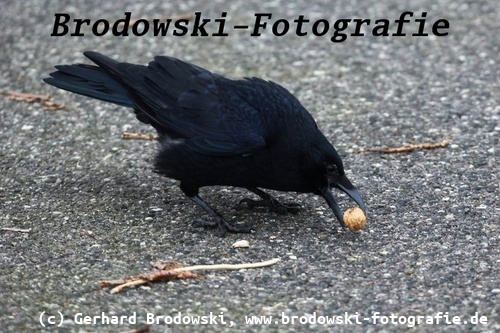 Wenn im Herbst die Wallnüsse reif sind, sieht man häufig wie die Rabenkrähen die Nüsse auf die Straße schmeißen, damit sie aufplatzen. Aber dass muss auch gelernt werden. Damit die Wallnüsse aufplatzen, muss die Fallhöhe stimmen. Die Eltern zeigen ihren Jungvögeln wie hoch sie mit der Nuss fliegen müssen. Mehr Infos und Bilder unter: