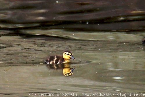Kurz vor Sonnenaufgang fahre ich erneut zur Stockente. Die Küken waren schon gesprungen. Aber ich sehe nur 6. Irgend etwas muss passiert sein, denn das Stockenten Weibchen schwamm sehr aufgeregt umher und flog immer wieder in die Luke unter ihrem Brutplatz. Sie schaute hinter einen Balken und nach unten ins Wasser. Es sah regelrecht so aus, als wenn sie ein Junges sucht. Dieses Verhalten dauerte weit über eine Stunde an. Dann schwamm sie mit ihren Jungen davon. In den nächsten Tagen sah ich sie mit ihren Jungen im Kanal nach Nahrung suchen. Wollt Ihr mehr Infos und Wissenswertes zum Thema Stockenten erfahren, dann geht auf meine Seite: Die Stockente. Dort findet Ihr auch viele Bilder. wie z.B. sehen die Eier der Enten aus. Oder Bilder von Stockenten-Köpfe.