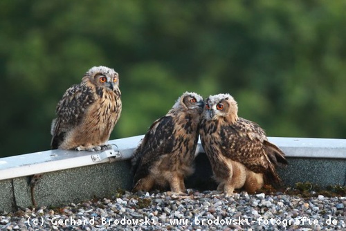 Und nun noch ein paar Bilder auf denen man sehen kann, wie Uhus ohne Störungen in der Stadt aufwachsen.