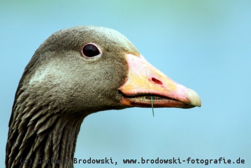Die Gänse und Schwäne haben einen breiten flachen Schnabel mit dem sie sehr gut Gras, Wasserpflanzen und Wurzeln abrupfen können.