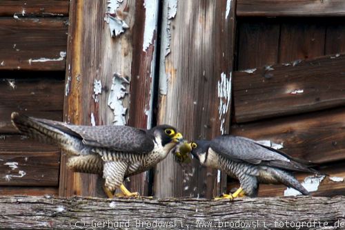 Und wie immer zum Schluss zeige ich Euch von der Wanderfalken Familie einige Bilder. Es sind Bilder vom Jungvogel, Flugbilder von Jungvögeln, Fotos von der Fütterung und vom Sozialverhalten der Falken.