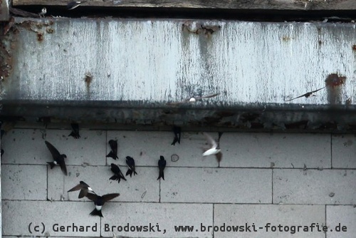 Es kam mit den Verantwortlichen zum Gespräch und es wurde festgelegt, dass der Abriss ruht bis die jungen Wanderfalken, Stockenten und Mehlschwalben ausgeflogen sind. Das Wanderfalken Paar hatte vier Junge die sie erfolgreich großgezogen haben. Außerdem gab es 45 Brutplätze von Mehlschwalben. Ich zeige Euch jetzt einige Bilder die ich bei meinen Schutzmaßnahmen aufgenommen habe. Bei meinen Beobachtungen fiel mir auf, dass in diesem Jahr die beiden Stockenten mehr unbefruchtete Eier hatten, als in den Jahren davor. Lag dies vielleicht an dem Stress durch die Abrissfirma?